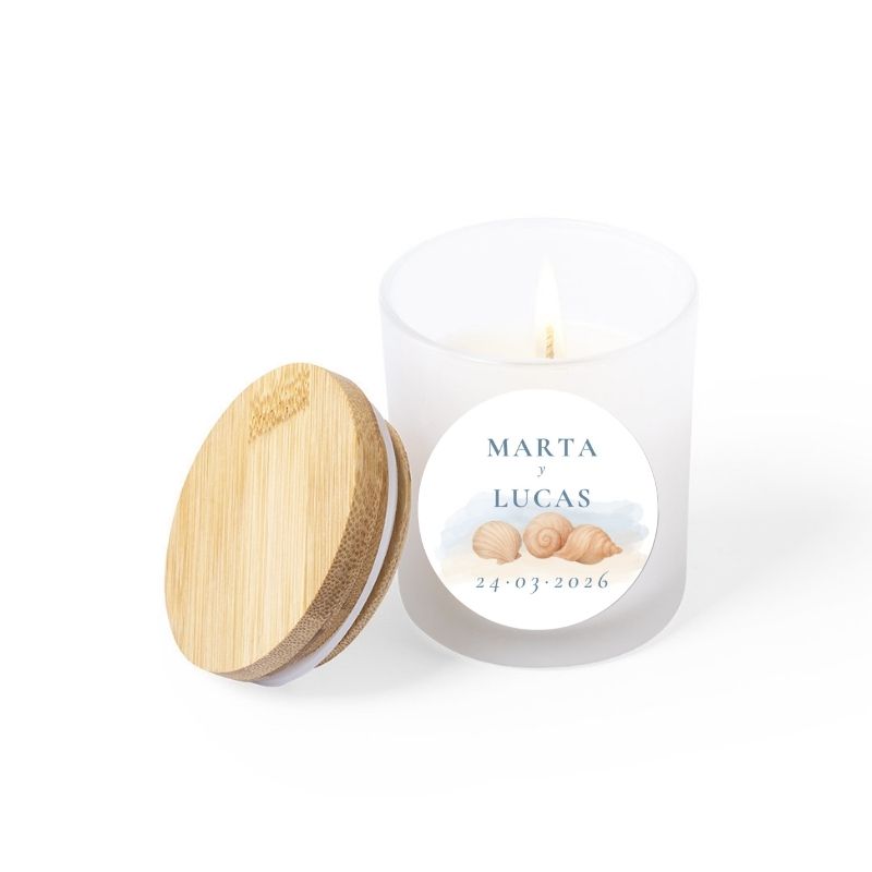 Cada vela se personaliza con vuestro sello visual —a juego con la invitación de la boda o la ilustración protagonista— para que sea un detalle lleno de intención y belleza.