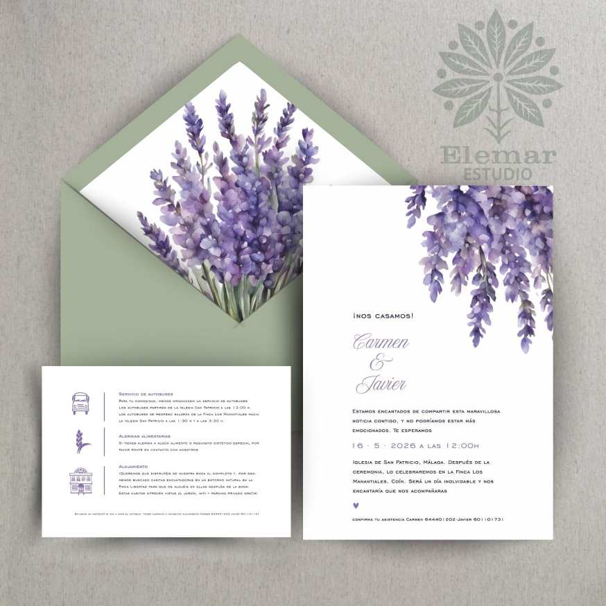 Impresa en el mismo papel texturado y acompañada por la ilustración en acuarela de lavanda, mantiene la estética serena y romántica de la colección.